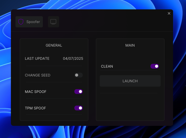 The spoofer works instantly — change your HWID in seconds with no complex setup. It includes a powerful Cleaner that removes all system traces, cache files, and identifiers to ensure a clean environment before launching the game.